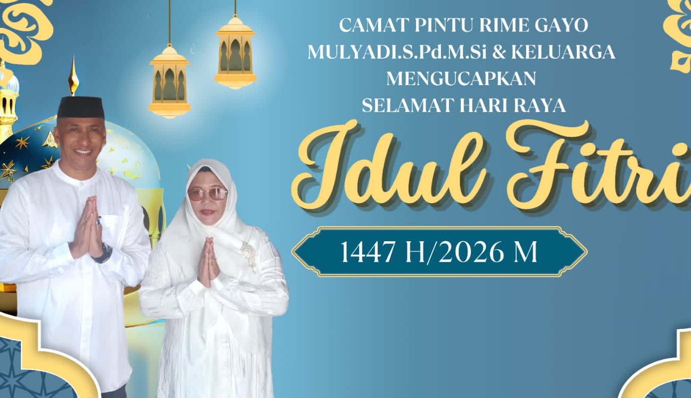Bener Meriah- Dalam rangka menyambut Hari Raya Idul Fitri 1447 Hijriah yang jatuh pada tahun 2026 Masehi, Camat Pintu Rime Gayo, Mulyadi, S.Pd., M.Si, menyampaikan ucapan selamat kepada seluruh masyarakat, khususnya warga di wilayah Kecamatan Pintu Rime Gayo.