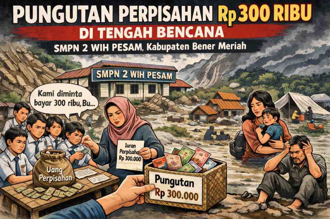 REDELONG — Di saat warga masih berjuang pulih pascabencana, pungutan uang perpisahan Rp300.000 per siswa di SMP Negeri 2 Wih Pesam menuai kecaman. Kebijakan ini dinilai tidak peka dan memberatkan orang tua yang masih kesulitan ekonomi.